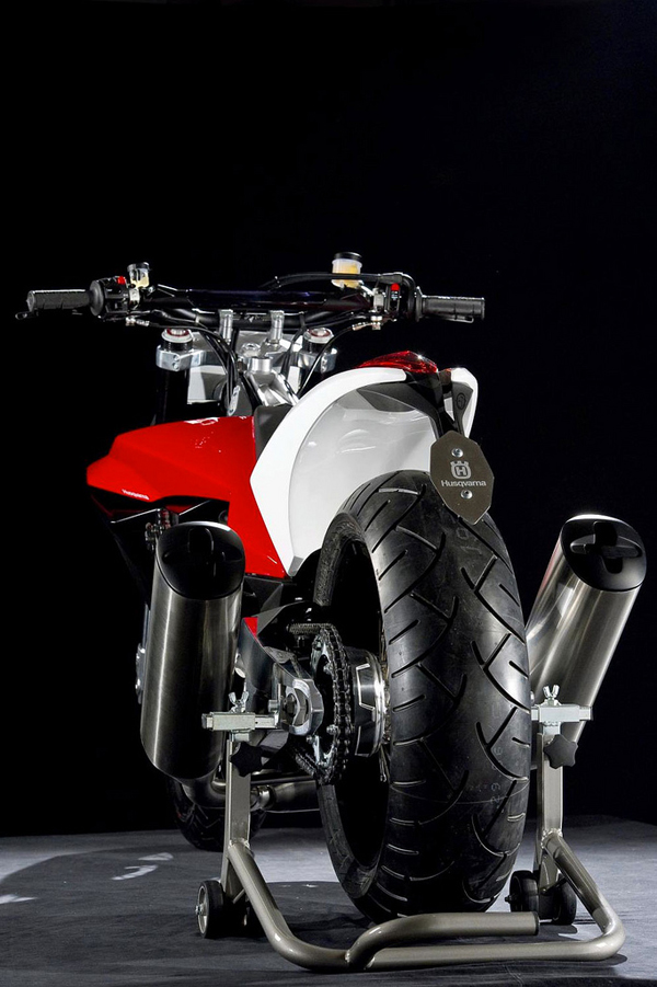 至於動力系統部分,據了解是搭載一具930c.c.三缸引擎,以目前市售車款的三具單缸引擎採V型組合而成,並且置入Husqvarna招牌的中央單體鐵骨車架上,其概念是三個汽缸有各別的冷卻系統,以維持單缸的散熱效率,不過詳細輸出數據則是未公佈的細節。