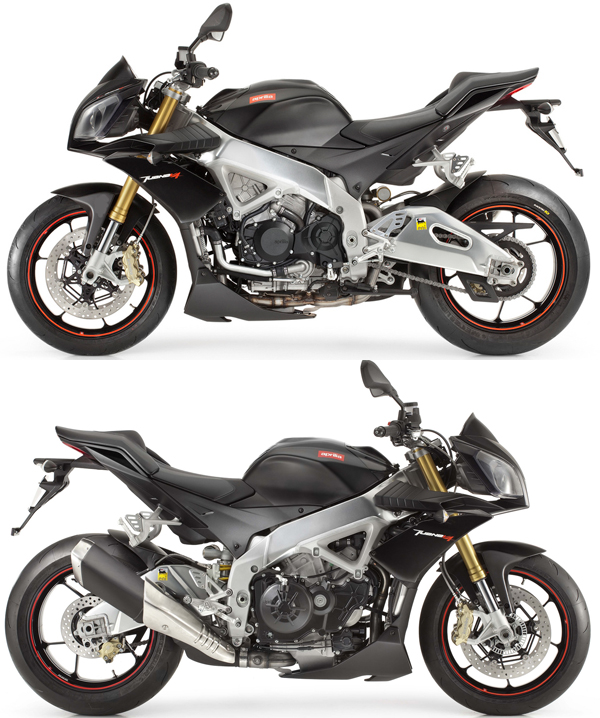 Aprilia Tuono V4R自從上市以來,可說是街車市場少數維持純正跑車設定的車款,與同血統的Aprilia RSV4跑車差異之處除了整流罩的大幅修減之外,以2011年式車型兩車型相比為例,Aprilia相當自豪的再將Tuono V4R的輪圈輕量達2kg,讓車重減為179kg;並且峰值扭力11.1kgm(RSV4為11.7kgm)的併發也向下調整至9000rpm時展現,而相同999c.c. V4引擎,在最大馬力輸出也從RSV4的180hp調整為162hp∕10000rpm,若是再加上全新APRC系統,就如同國際媒體一致的評論,2011年式Aprilia Tuono V4R可說是一款裸著車身的仿賽。