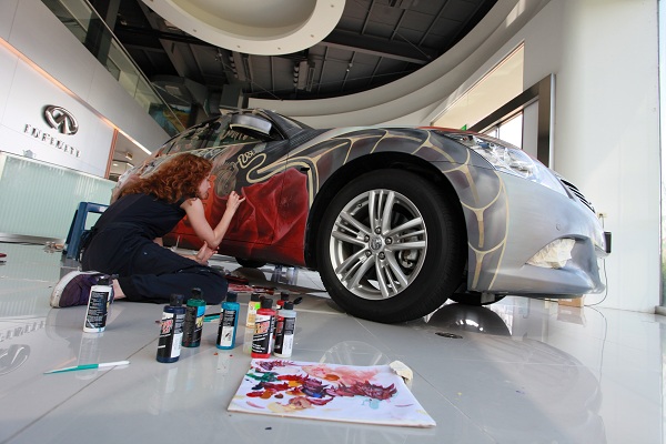 Infiniti打造台灣專屬「Zeitan」G25 太陽劇團彩繪車,特邀加拿大超現實主義畫家 Heidi Taillefer 來台親手彩繪,並以鳳凰為主要構圖。