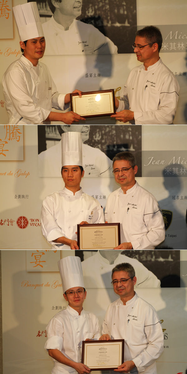 邀約米其林主廚客座,於這幾年間在台灣美食界掀起不少風潮。除反映台灣與國際間美食交流日趨頻繁外,也昭示國際名廚對台灣市場的重視,如近期間不少國際性餐廳與連鎖飯店的加入,更是突顯出國人對精緻美食的嚮往。本次犇騰宴,台北亞都麗緻與台中樂沐均派遣師傅至法國當地研習,由米其林主廚親自教授,更於12月1日所舉辦的犇騰宴記者會上,由三星主廚Jean-Michel Lorain首次頒發實習交流證書予台灣師傅。此舉不只是興其主廚對於台北亞都與台中樂沐、對犇騰宴籌備學習成果的肯定,更是雙方副主廚於米其林餐廳專業學習的重要經驗證明。