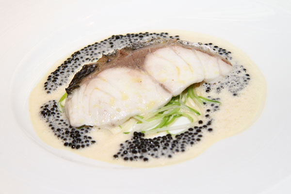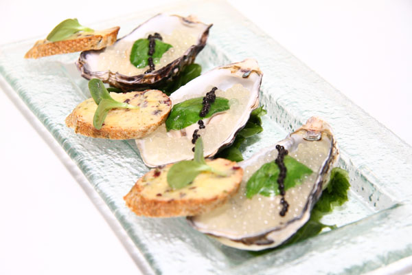 於12月1日當天舉辦的犇騰宴記者會中,米其林三星名廚Jean-Michei Lorain現場還特別準備了本次「犇騰宴」中的三道名菜,此為凹殼生蠔佐清淡奶霜與烤麵包。