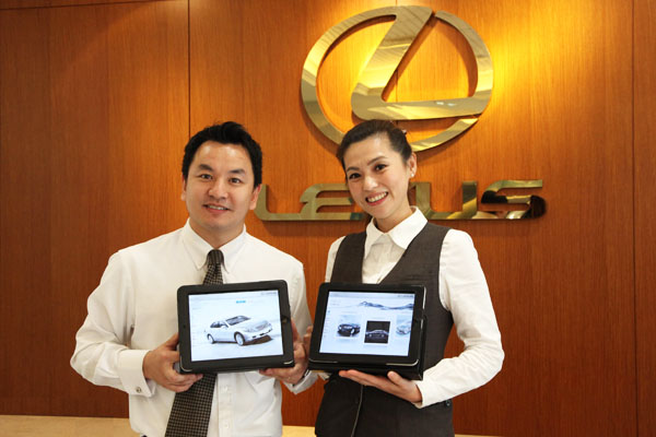 今年Lexus斥資千萬投入「Lexus iPad互動銷售體驗」服務專案,將iPad運用於新車銷售輔助、顧客服務、日常業務及銷售顧問行程管理上。每位銷售顧問將配置一台iPad,透過此一iPad平台,不僅能針對難懂的技術或新科技進行顧客解說,如Lexus領先之Hybrid科技,銷售顧問也可立即播放影片來進行說明,讓顧客更容易了解汽車相關資訊。此外,iPad平台也提供所有車款最新資訊的即時查詢,及競爭廠牌之車款比較,讓顧客隨時掌握最新消息。Lexus銷售顧問的日常業務與行程管理也可透過iPad進行安排,例如預約試乘的立即查詢與安排、新車交車期查詢、客戶拜訪行程查詢並回報結果等,以往要回辦公室才能處理的業務,現在都可以透過iPad隨時隨地輕鬆完成。