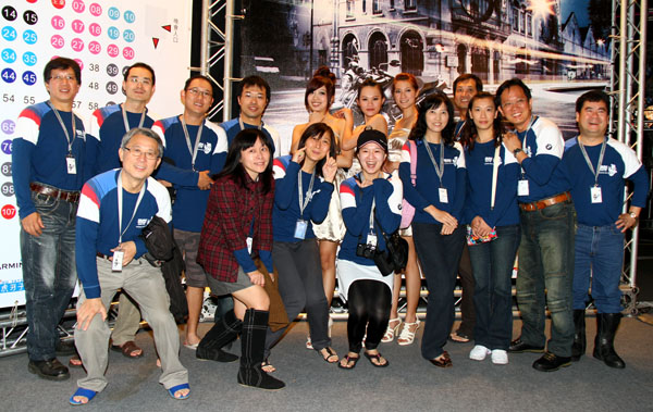 晚會入場前的車友先聚集在GS 30周年紀念的背板前合影。
