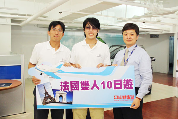 甫於第三屆 “308 省油挑戰賽” 活動中成功刷新紀錄,締造39.60km/L的參賽者 – 方俊翔 / 李宗倫,兩位皆為第一次駕駛Peugeot車輛,當得知 “308 省油挑戰賽” 網路募集省油達人時隨即組隊報名參加,並於近1,000組網友資料中由寶嘉聯合徵選而出;當兩人確定入選為挑戰者時,除以體驗駕駛308之心情外,也開始儲備體力、訓練耐力,針對活動流程、路線進行規劃。經過兩人溝通默契的合作下,不僅於第一天3080遊西部活動中,以16個景點與14道美食奪得「景點王」之獎項,贏得PAPAGO!H5600導航車機乙部;更於308油耗測試行程中,以39.60km/L之優異油耗成績刷新2009年“308 省油衛冕挑戰賽”之紀錄,獲得雄獅旅遊推薦之法國雙人10日遊,可謂此次 “308 省油挑戰賽” 之雙料冠軍、最大贏家。