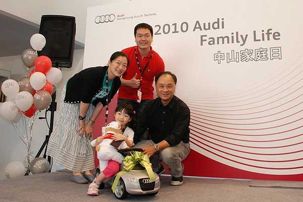 全場活動最高潮由闔家蒞臨的台灣奧迪汽車大家長邱山祥總裁以及台北合迪汽車董事暨總經理麥偉森一起主持頒獎儀式,而邱總裁與千金在活動現場自然流露的親暱互動,更是留給參與活動的車主朋友們彌足珍貴的美好回憶。藉由Audi車主們踴躍絡繹的參與,「2010 Audi Family Life中山家庭日」活動在一片歡樂愉快的氣氛中圓滿落幕,同時也展現出台灣奧迪汽車致力耕耘國內廣大車主們對於四環品牌歸屬感的用心!