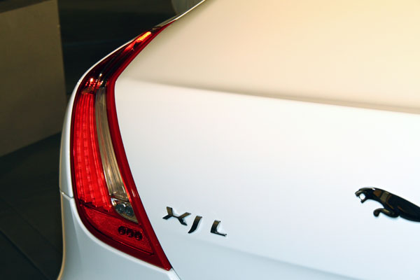 All New XJ車頭擁有網狀格柵式的家族水箱罩設計,匹配前輪超低線條以及氙氣大燈凸顯出前傾的侵略姿態;車尾採用浮雕式設計,簡單大方的概念傳達All New XJ充滿自信、力量的本質。同時,車尾縱身跳躍的豹身廠徽更帶出濃厚美感,匹配兩旁自行李廂延伸至車尾的LED燈組,呈現出引人注目的紅色垂直光帶。