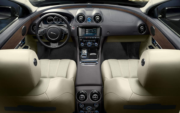 All New XJ內裝給人的第一感覺是奢華私人空間,以皮革包覆的儀表板橫亙前方,車艙兩側大膽以木質飾板從車門延伸至前擋下方,凸顯All New XJ座艙來自豪華私人遊艇的設計理念;從內裝來看,All New XJ將優雅、現代化的設計與Jaguar固有的舒適、奢華與動感完美融合,鍍鉻與鋼琴黑內飾,精緻皮革與木質內飾形成鮮明對比。除此之外,All New XJ車系車艙內包括座椅、儀表台、門內扶手、中控台以及鞍座扶手,全都採用真皮皮革包覆;頂級的Supersport長軸超跑版車型則更配備有皮革頂蓬。
