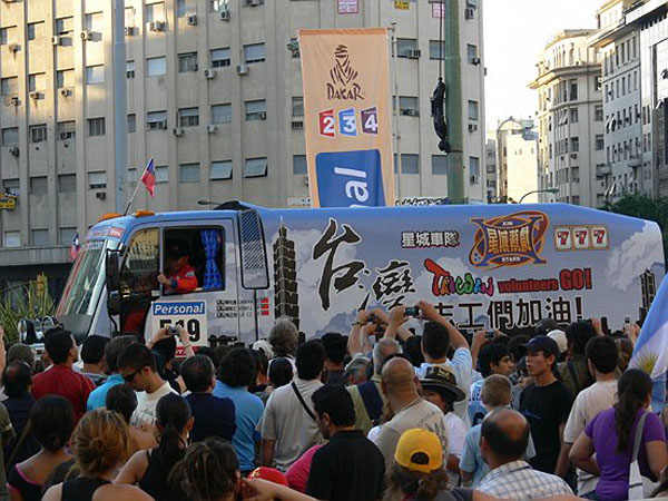 今年年初陳和皇駕著星城車隊台灣志工號參加32屆達卡越野拉力賽事時,受到空前的歡迎場面!
