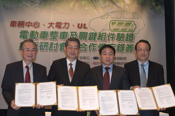 為推動我國電動車輛標準檢測驗證平台發展,以協助國內業者能快速切入國際市場,財團法人車輛研究測試中心(車輛中心)與財團法人台灣大電力研究試驗中心(大電力)於今(3/1)日分別與國際知名產品安全標準制定與認證機構UL簽署合作備忘錄,並同時舉辦「電動車整車及關鍵組件驗證技術研討會」。未來三方將藉由優勢互補,針對電動車全車電氣安全、電力電池、馬達、驅動器、充電系統及充電站等,發展與國際接軌的標準與驗證,共同推升台灣產業的技術實力,引領台灣電動車產業登上國際舞台。