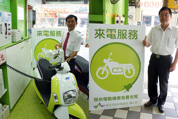 電動機車騎士有福了,中央與地方政府積極推動電動機車產業發展,各縣市政府也加入推動的行列,繼桃園縣政府與中華汽車合作,優先成立e-moving電気二輪車專屬電池交換站之後,為了讓使用電動機車騎士有更便利的使用環境,臺北市政府環保局也對外宣佈將全面增設充電站,其中,為使電動機車騎士能更清楚臺北市可供充電服務的地點,並特別設計充電站友善服務標誌,凡電動機車騎士以後只要看到掛有該服務標誌之電動機車充電站,就可以進站享有免費充電服務。