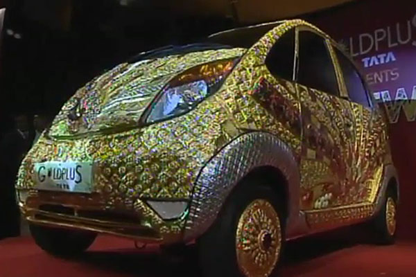 以2,500元美金身價震驚全球車壇的Tata Nano車款,以全世界最便宜的四輪汽車身分問世,將輪汽車的入手門檻降低至空前的新低;不過此次Nano的身價可要一番好幾翻,於印度珠寶華會此活動中,Tata找來了印度制表及珠寶商泰坦工業公司(Titan Industries)與旗下黃金珠寶商GoldPlus共同合作,打造了一輛批上大量黃金與珠寶的Nano車款,根據估算,此輛Nano身價可能飆破460萬美元大關!