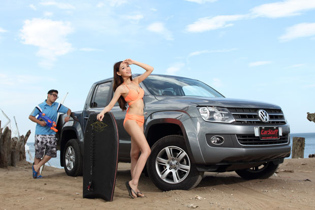 時而日光浴,時而下水征服浪潮,歡樂的時光就這麼輕鬆過去,擦去身上的海水,抹掉渾身的細沙,稍微整理後,Miki與小蔣迅速的將隨身裝備快速的扔上Amarok的貨斗內,不用擔心刮傷了皮椅,不用害怕弄濕後行李廂,高聳的車身高度與4Motion四輪驅動系統更讓Amarok直接從沙灘中疾駛而出。帶著眾人的欽羨目光,Miki與小蔣相約下次再來,有了Amarok的陪伴,海灘女孩與男孩,就是你征服仲夏的最佳裝扮!