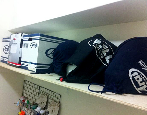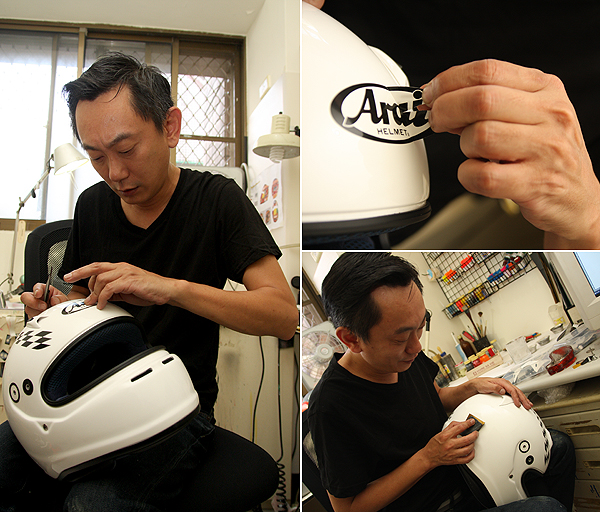 架上的安全帽,都在等待Kevin的巧手賦予新生命!