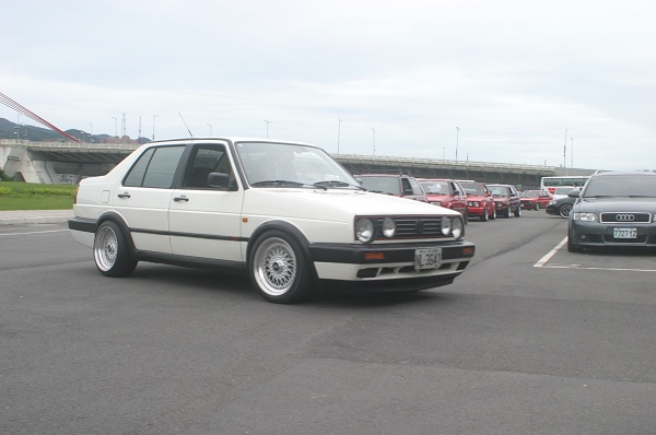 02車為Jetta,一樣改Golf GTi車頭水箱護罩與四圓燈,前後配BBS圈是亮點!