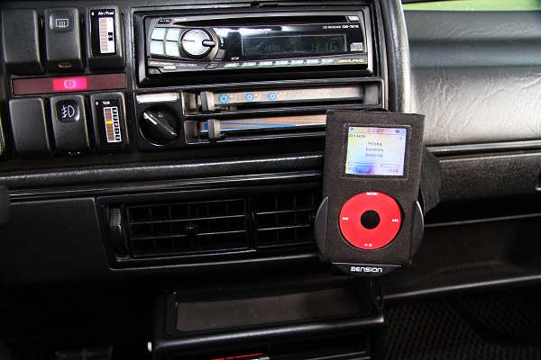 音響系統除了使用Alpine主機以外,門邊喇叭的升級自然也少不了,還使用了當時i Pod第一代車用音響連接系統ice Link套件,這個套件含支架並且內部接電源提供給這台黑紅配色的i Pod使用〈本車也是外觀紅,天篷跟地毯都是黑色的〉,真是潮流來著。