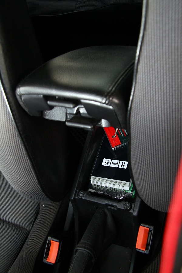 還有就是自行加裝中央扶手〈當年有中央扶手的車也數得出來〉,這個全塑料中央扶手也是來自eBay,車主將這個扶手去包覆黑色皮革,與後座連成一氣,可說是相當具有質感!不過加裝這個中央扶手會面對一個問題,就是原先Golf二代的座椅椅背調整角度旋鈕是在內側,如果裝了中央扶手,就沒有地方可以調整椅背角度,那怎麼辦?還是老外玩Golf有經驗,把前座椅對調,那麼調整的問題就迎刃而解了!不過這組駕駛座可以調高低的日本來的GT Special座椅,原先應該是右駕車,所以這樣的對調,還剛好讓駕駛座也在左駕版發揮效果,真是天作之合啊!