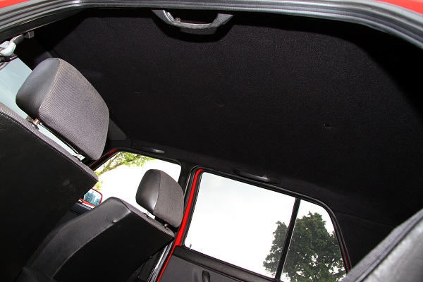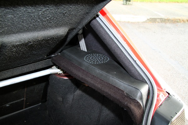車頂與地毯當然也是師法GTi,全部重新打造以黑色為主,C柱內飾板與音響上方塑料也都以手工真皮包覆,以與全車內裝色系相呼應。