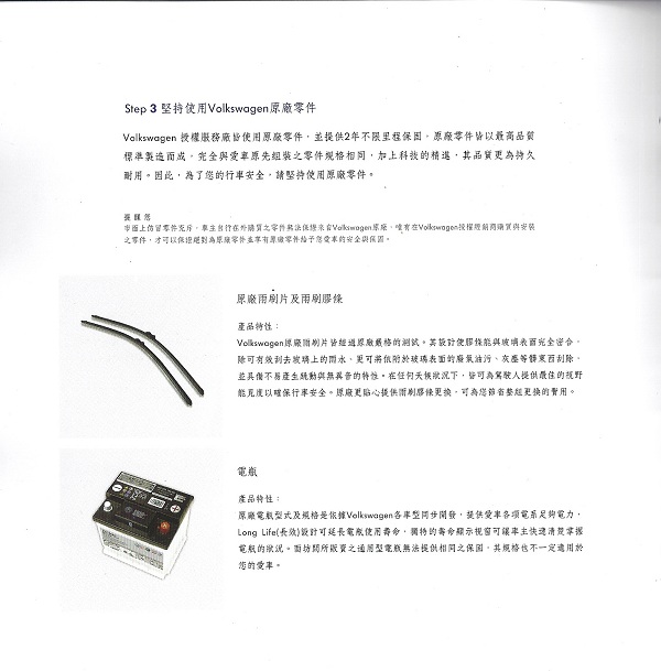 當各位VW車主進到了VW保養廠,都可以看到一本印刷精美的保養觀念指導手冊,內容大致是說小心不要用到假的零件,會對車輛造成損害與危險,當然最好是都在原廠或是原廠授權的廠家〈VW體系有一個Stop+Go的連鎖體系,其實都是早期維修VW的老技師或是學成外出自己開業的VW技師〉,進行維修保養!