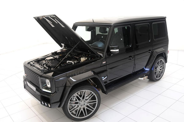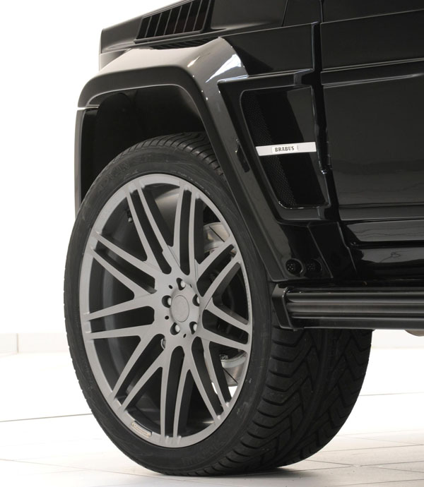 車身造型也配合著車名訴求,由於G-Class專有的輪拱設計,因此在車體加寬工程中,BRABUS主要以輪拱外擴動作為主,且搭配著20吋至23吋不等的多樣輪圈、前380mm/後345mm直徑的碟盤規格、可調式套裝懸吊系統等,強化底盤的強度與性能。