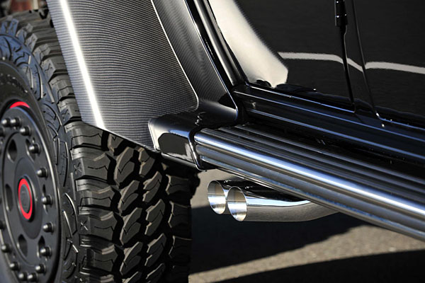 以G63 AMG 6x6車型為基礎重新改造的Brabus B63S,動力系統自然是亮點,換上了Brabus旗下名為B63S-700的動力升級套件,經過針對渦輪增壓系統的重新調校後,最大馬力直上700hp/5300rpm,峰值扭力更有驚人的960Nm/2500-4000rpm表現,搭配上AMG Speedshift Plus 7G-Tronic變速系統,驅動下盤的六只車輪,可於7.4秒內完成0-100km/h加速,極速則考量車身規格,限制在160km/h的水準。