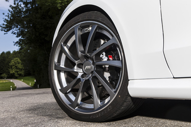 「在引擎排氣效能獲得更佳的紓緩後,只要搭配ABT青銅色色澤的DR系鋁圈,就能給予這部車嶄新的視覺呈現」;ABT Sportsline執行長Hans-Jurgen Abt說道。這輛ABT RS 5 Cabrio的四輪換上了9.5 x 20吋的ABT DR鋁圈,而輪轂墊片更能進一步優化這部敞篷車的操控性能。