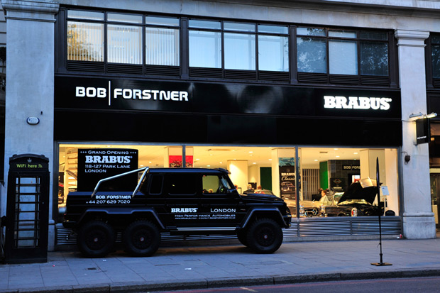 BRABUS倫敦旗艦店的正確地址為118 – 127 Park Lane,其緊鄰於海德公園(Hyde Park)旁,而於德國Bottrop經過專業訓練的BRABUS銷售顧問,更在英國此一大都會中提供消費客戶第一手的服務,他們將協助、並接受客戶有關訂購BRABUS完裝車的相關諮詢,或提供既有Mercedes車主進一步的改裝建議。