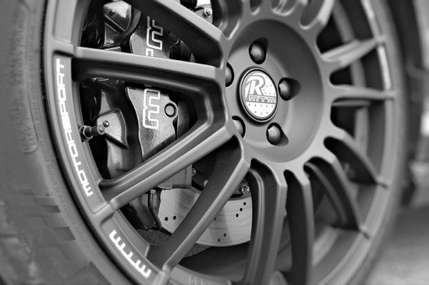 MTM Golf VII R將前輪煞車系統置換為八活塞卡鉗搭配大型碟盤,以便可迅速地「壓制」其源源不絕的動力輸出。