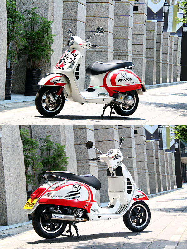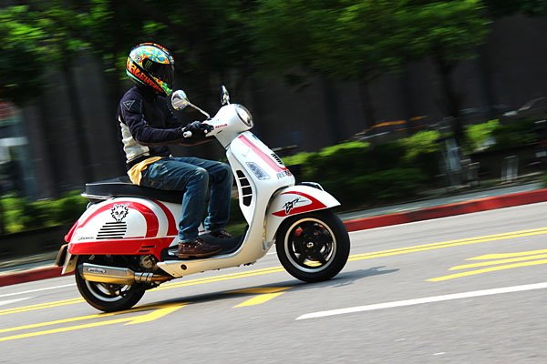此次向Remus台灣總代理佰駒汽車所商借的Vespa GTS 300 ie,除了外觀彩繪與換上了Remus對應的升級排氣尾管,其餘皆為原廠配置。