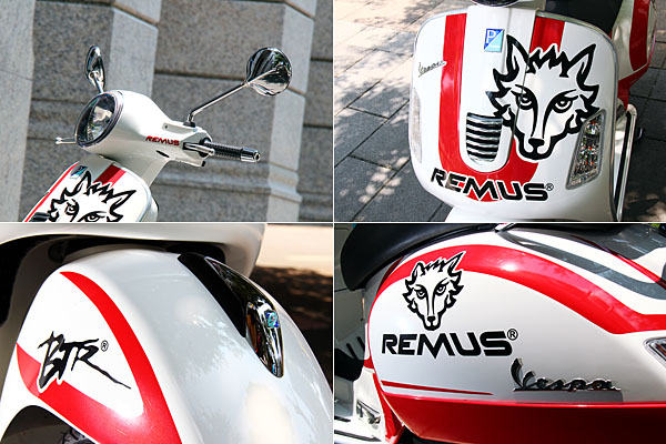 為了展現Remus的部品特色,佰駒汽車特別將此輛GTS 300 ie進行全車彩繪,設計感與完整度十分出色;讓一向以質感著稱的Vespa,頓時有了明顯的運動氣息。