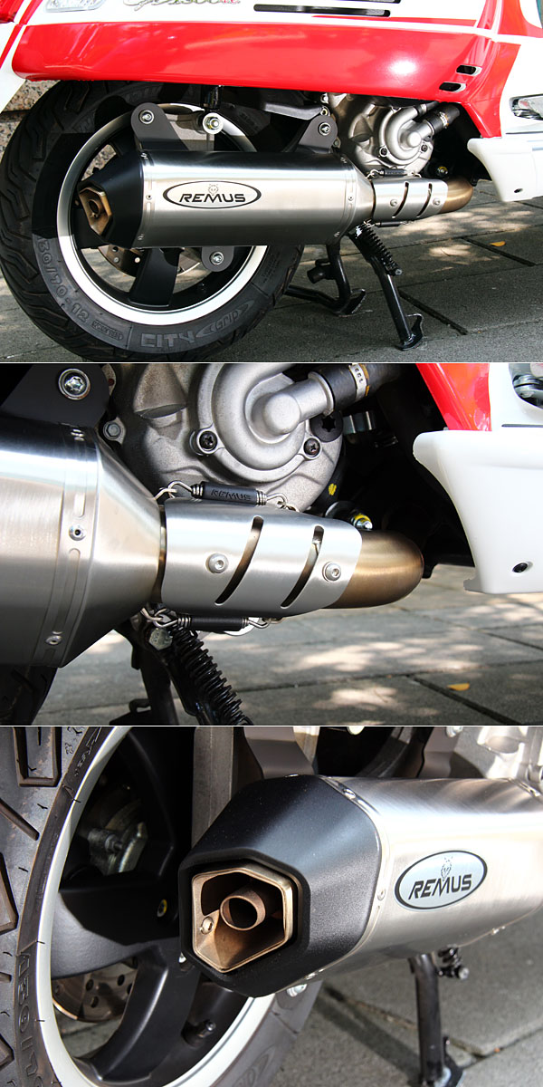 Remus對應排氣尾管的加持,就好比是在相同的動力系統基礎上,將原有自排變速箱換上手排變速系統的差異,動力供給的反應更快,似乎解除了些限制,讓動力表現更紮實且迅速,別忘了還有聽覺方面的同步享受,與排氣管外部細膩的質感包裝,與強調韻味的Vespa相當對味。不過分張揚的提升性能,就如同Vespa的造車理念般,低調的樂趣,Remus詮釋的挺適切。