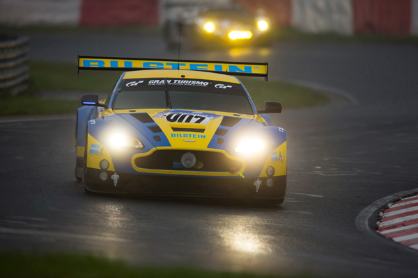 披上藍、黃BILSTEIN標準色的Aston Martin Vantage GT3賽車,則在賽事進行的初期階段扮演領先者的角色,並與Audi、Porsche賽車有著激烈的纏鬥;駕駛Aston Martin Vantage GT3賽車的前F1車手Pedro Lamy,在賽事中斷前居於領先的位置,然而,這些不確定的影響因素,也造成最終局面的徹底洗牌。Aston Martin今年協同主要技術夥伴BILSTEIN共同出賽,雖然結果差強人意,但總合第10的名次,對Aston Martin的百週年廠慶來說,已經是十分出色的表現了。