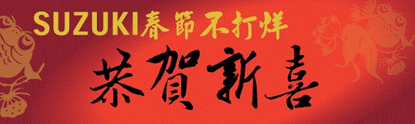 春節服務期間:103年1月30日(除夕)至103年2月4日(初五)共六天,各據點服務時間及服務內容請先電話聯絡確認。Taiwan Suzuki以最真誠的心,關心您及您的愛車,讓您在春節假期間能盡興的渡過每一個快樂的時光。Taiwan Suzuki陪伴您,並祝大家新春假期快樂,馬到成功。