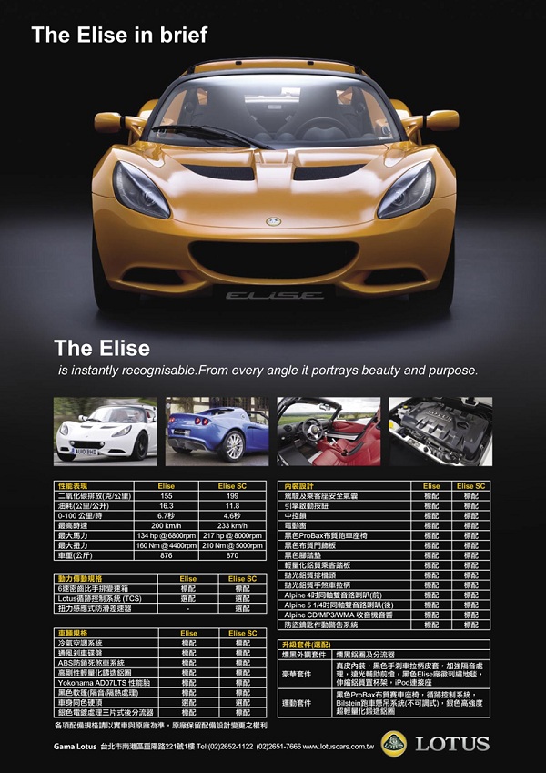 【原廠新聞】2011 Lotus Elise&Exige規格表