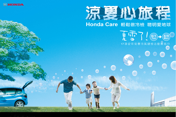 即日起至8月9日止,Honda為愛車推出『夏雪了』涼夏健檢活動,17項冷氣空調系統專業檢查及健檢履約保證,同時提供冷氣空調潔淨優惠套餐,車主們不坊趁著酷夏來臨前,到全國Honda Care替愛車夏日健診吧。
