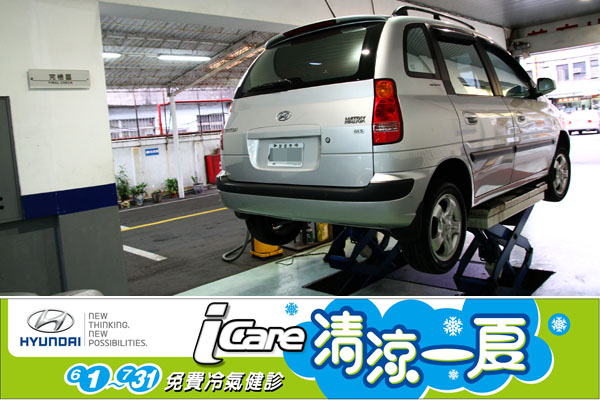 三陽Hyundai汽車免費行車冷氣健檢「HYUNDAI iCare2011清涼一夏免費健診活動」,不僅關心您的愛車,也關心你的感受;讓你在炎炎夏日,行車安全神清氣爽;三陽Hyundai汽車的車主們,趕快行動,6月1日起,快開著你的愛車,到三陽Hyundai汽車接受專業技師們的熱情服務款待喔~!
