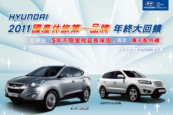 因此南陽實業為歡慶在新一年初的雙喜臨門,乘用車全車系「五年不限里程延長保固」專案在本月(元月)持續加碼之外,主力車種(SANTA FE、ix35及i30)元月底前交車就送萬元配件禮,其中i30還可以享50萬40期0利率優惠。