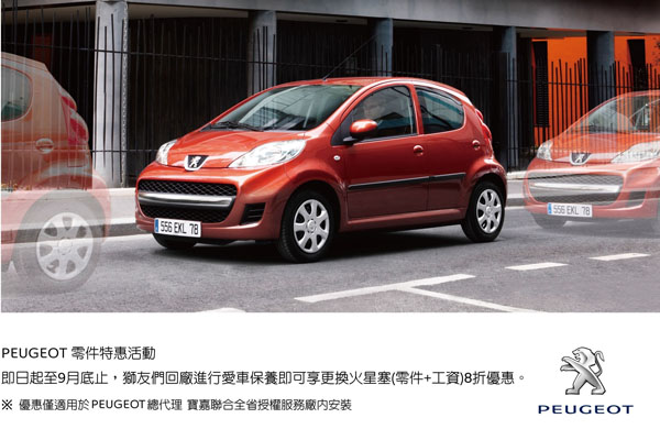 Peugeot總代理寶嘉聯合建議您,為節省車主寶貴的時間,請多加利用服務廠的預約專線,事先安排服務時間,讓PEUGEOT全省服務團隊為車主提供最優質的服務。PEUGEOT售後服務團隊竭誠歡迎您的蒞臨,欲知活動詳情,請速洽全省PEUGEOT經銷商服務廠或透過網路www.peugeot.com.tw、顧客服務專線0800-207-307與我們聯絡。