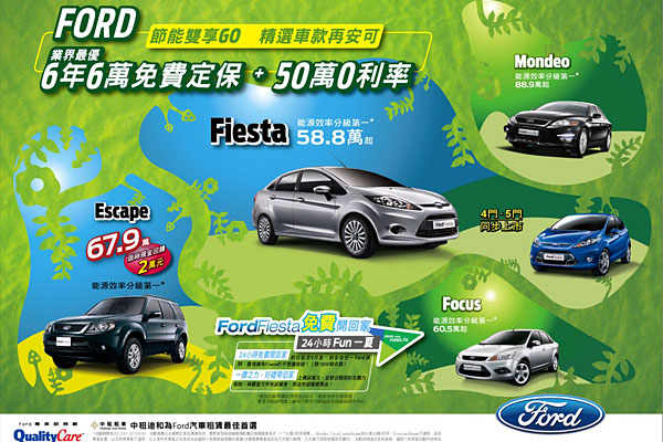Ford自七月份所推出的「Ford Fiesta免費開回家」深度試駕活動開始以來,受到廣大消費者踴躍的報名並在各大網路討論區形成熱烈的話題。此活動將至本月底結束,預參加的消費者,應盡速前往福特展示間報名安排。此活動期限至9月30日為止,消費者千萬不能錯過。活動詳情,請參考「Ford Fiesta免費開回家」活動網站http://driveyourfordlife.com.tw/