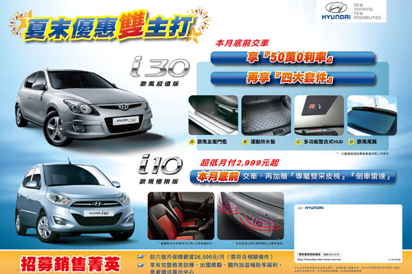 Hyundai 九月優惠實施中,i10 & i30夏末優惠雙主打