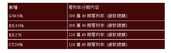 GS450h/ RX450h/ RX270/ CT200h 零利率分期