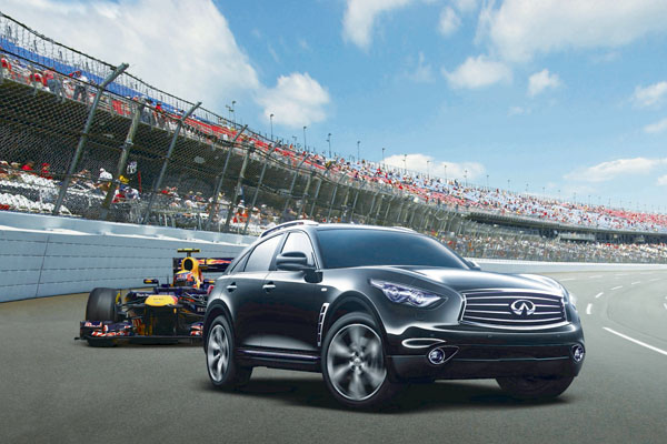 Infiniti自2011年起成為F1 Red Bull車隊官方指定合作夥伴,延續連年的優異表現,Red Bull車隊及其車手Sebastian Vettel,今年再度展現優秀的操控技巧搭配強大的賽車性能,奪得2012年度車隊及車手總冠軍,Vettel更成為F1史上最年輕連續奪得三連霸的冠軍車手,技壓傳統明星車隊。Red Bull車隊持續超越自我的表現,正如同Infiniti品牌不斷挑戰與創新的精神,包括VQ引擎性能、Safety Shield安全科技與AVM環景顯影系統等皆獨步車壇,傲視群雄。