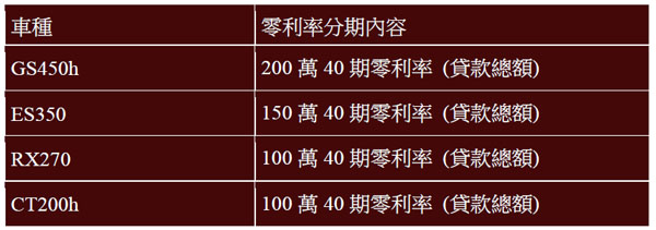 ●GS450h/ ES350/ RX270/ CT200h 零利率分期