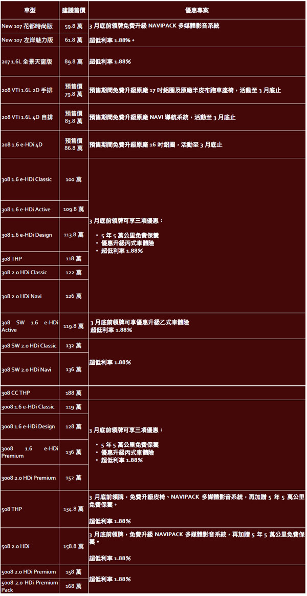 Peugeot總代理寶嘉聯合推出全車系最新優惠!