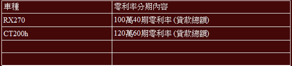 1. RX270/ CT200h 零利率分期