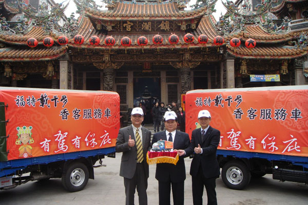 長期關懷本土、深耕台灣的福特六和汽車公司,宣布再度贊助今年度大甲鎮瀾宮媽祖遶境祈福進香活動,提供10 輛載卡多商用車組成遶境香客服務車隊,並精心訂製5,000頂「Ford載卡多媽祖保庇帽」,免費送給報名參加2012年大甲媽祖遶境的香客,讓香客一路舒適便利。