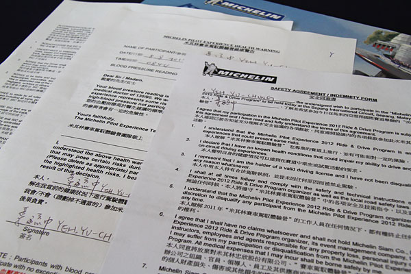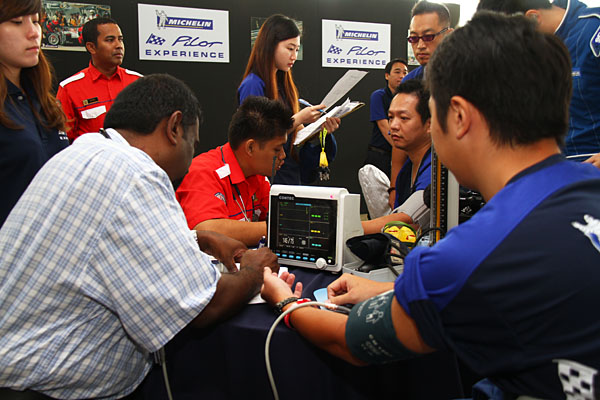 當然,無論是媒體或此行的幸運民眾,皆非專業賽車手,考量賽車運動的激烈程度,完善的防護與初步的健康檢查是必要的。除了先前千叮嚀萬叮嚀的切勿於前日飲酒與過於疲勞外,也在換上專業的賽車服與賽車鞋後,來個最基本的健檢。從重大疾病的詢問到血壓的測量等,就是確保在接下來的賽道體驗中,每個參加學員可以健康的姿態參加,避免有任何身體的病痛影響了生命安全;畢竟生命無價,為了體驗而罔顧健康安全,絕對非必要。