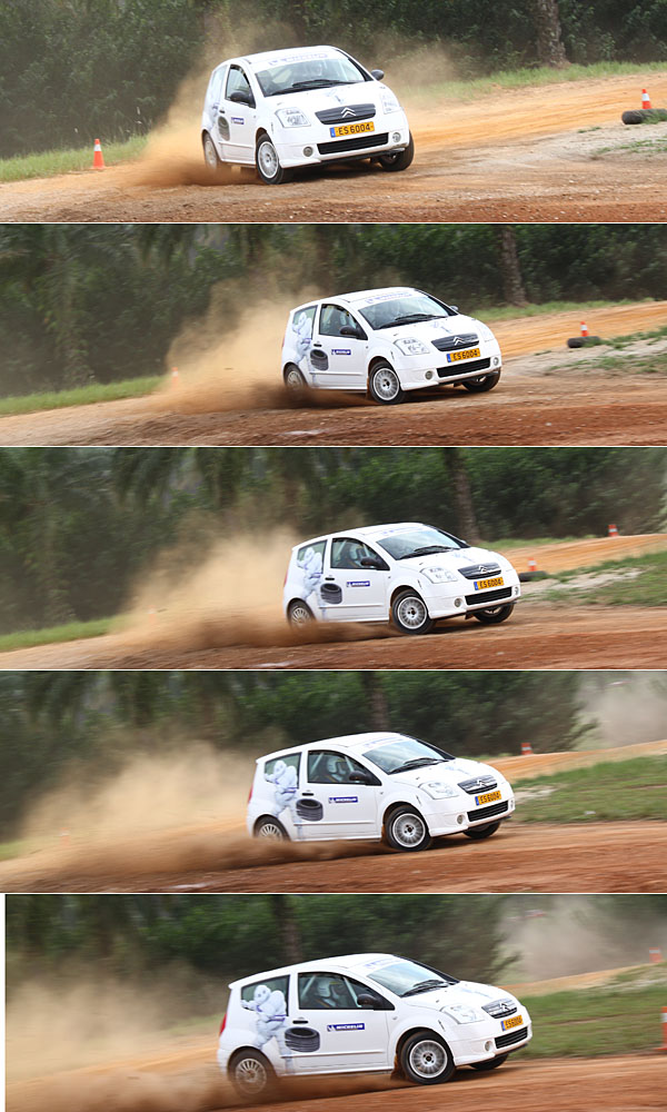 Citroen C2拉力賽車就是此關卡的主角;具備150bhp的馬力輸出,全車拆空與防滾籠加裝,加上兩只賽車椅,全車重僅有650kg,搭配上14/65R15的Michelin專用越野胎。