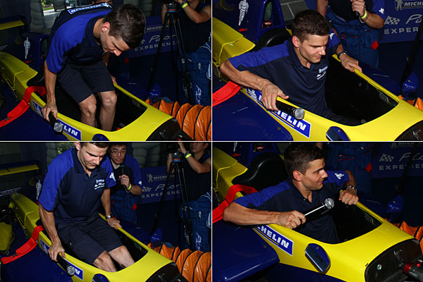 原廠人員先透過放置於專屬機器上的同款米其林方程式賽車,讓大夥在正式上賽道前,可以先坐進駕駛座艙,了解序列式排擋、猶如戰鬥機的方向盤的操作方式。