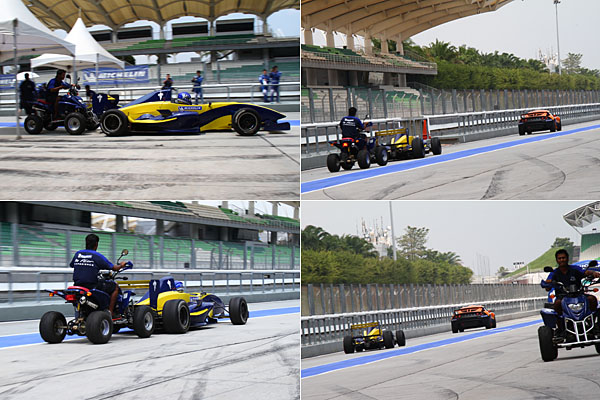 以沙灘車作為後方輔助推力,待賽車速度提升後,沙灘車便會自行離開,以方便賽車起步,避免熄火狀況發生。
