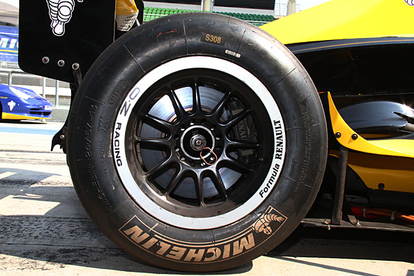 米其林方程式賽車使用的微光華賽車胎,尺碼為前20/54-13、後23/57-13(賽車胎規格標示與市售胎有所不同)。